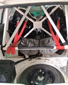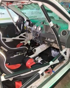 Vidrios laterales de policarbonato y capot de fibra.